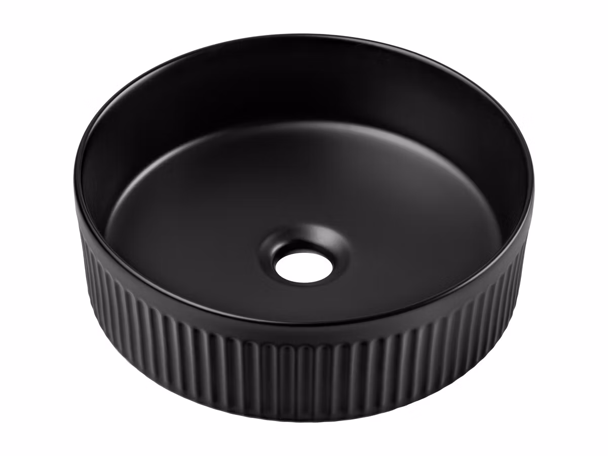 Elegant svart fristående tvättställ i porslin som passar perfekt i det moderna och stilrena badrummet. Tvättstället är lätt att rengöra.