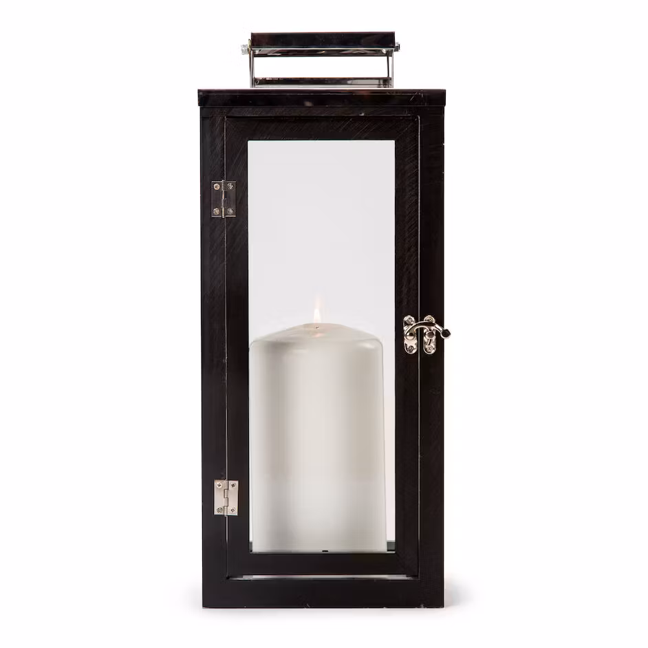 Svart robust trälykta från Orrefors Jernverk. Lyktan består av målat furuträ med detaljer av rostfritt stål och väggar av glas. Öppnas och stängs med en dekorativ hake på framsidan. Lyktan blir en snygg detalj i inredningen och skapar dessutom ett mysigt sken. Lyktan kan användas utomhus under tak vid varmare väder.