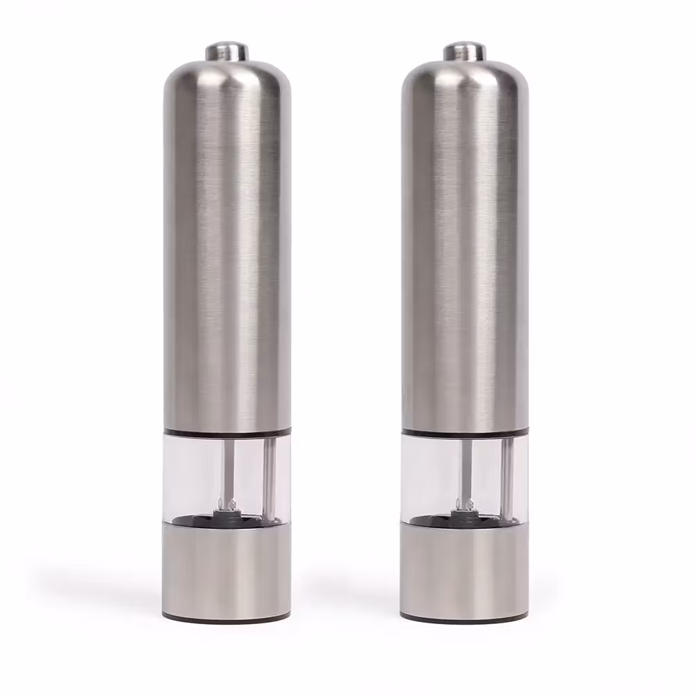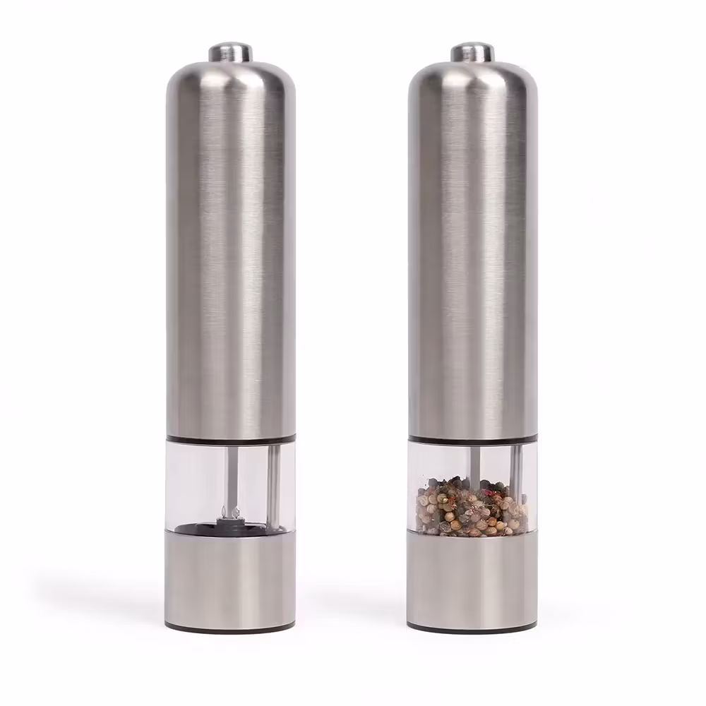 Två elektriskiska kryddkvarnar från Livoo med synlig fyllnadsnivå.