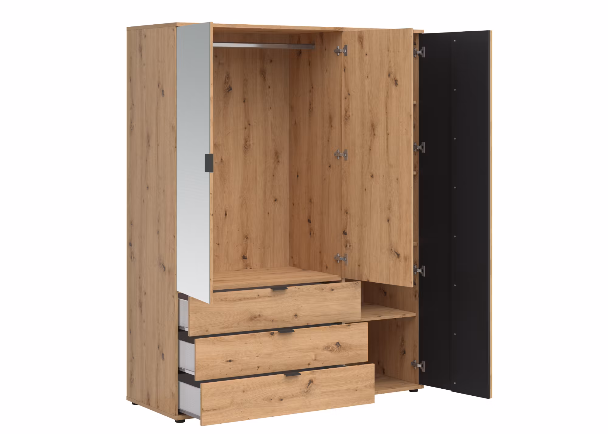 Vabres garderob – Artisan Oak med spegeldörrar och lådor