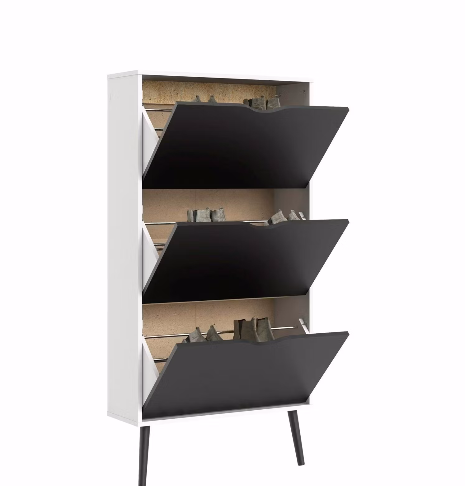 DELTA V 41074 Skoskåp Höjd: 139 cm, bredd: 70,5 cm, djup: 24 cm. Basmaterial: möbelskiva, finishfolie. Skötselråd: Torka med en trasa fuktad med milt r