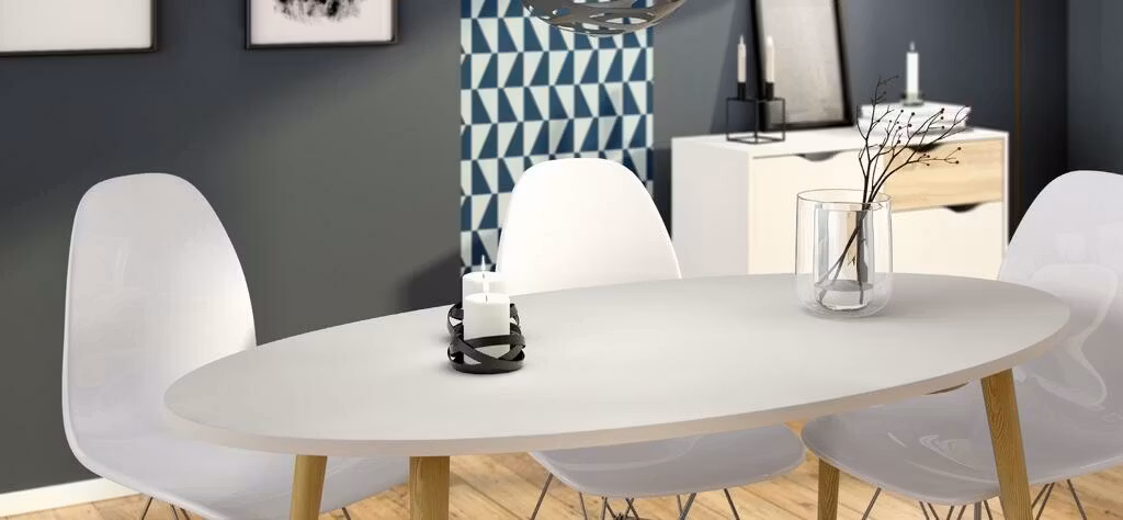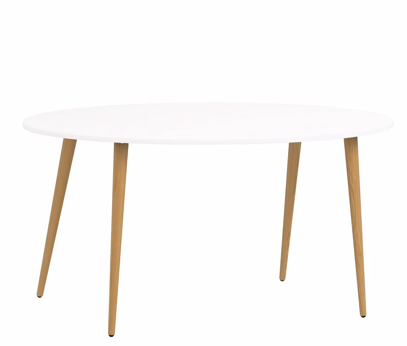 DELTA V 75397 Bord Höjd: 75,5 cm, bredd: 80 cm, längd: 160 cm. Basmaterial: trä, möbelskiva, finishfolie. Färg: vit / ek. Skötselråd: Torka med en