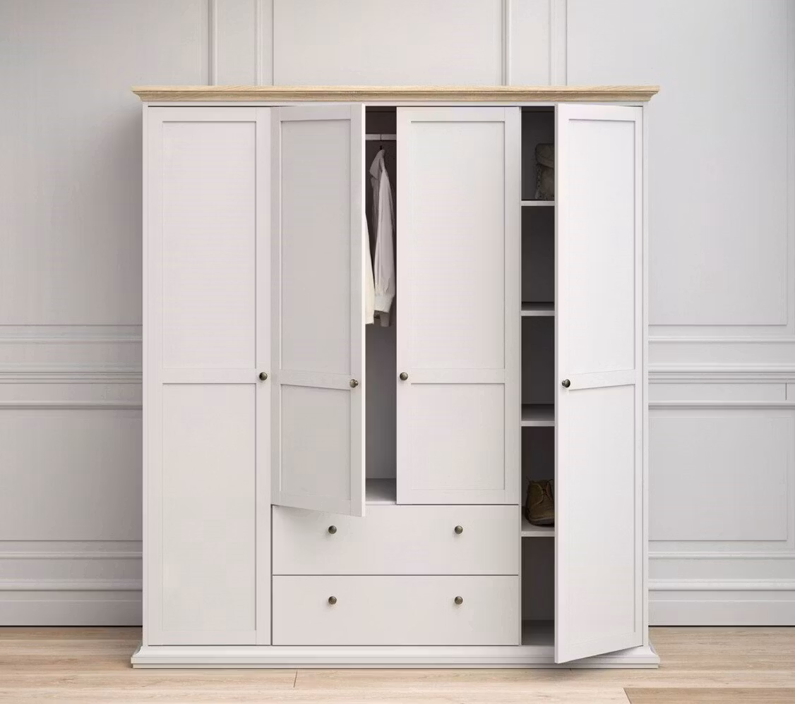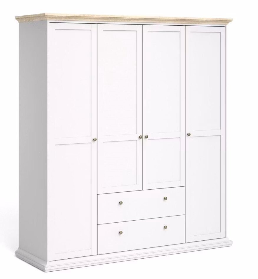 PARIS 75369 Garderob med 4 dörrar och 2 lådor