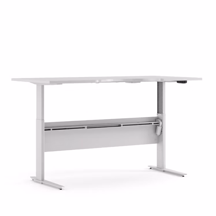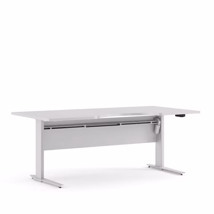 PRIMA VIT / VIT 80400/318 Höj & sänkbart skrivbord Höjd: 68,5 / 120 cm, bredd: 150 cm, djup: 80 cm. Basmaterial: möbelskiva, finishfolie 3 D, metall.