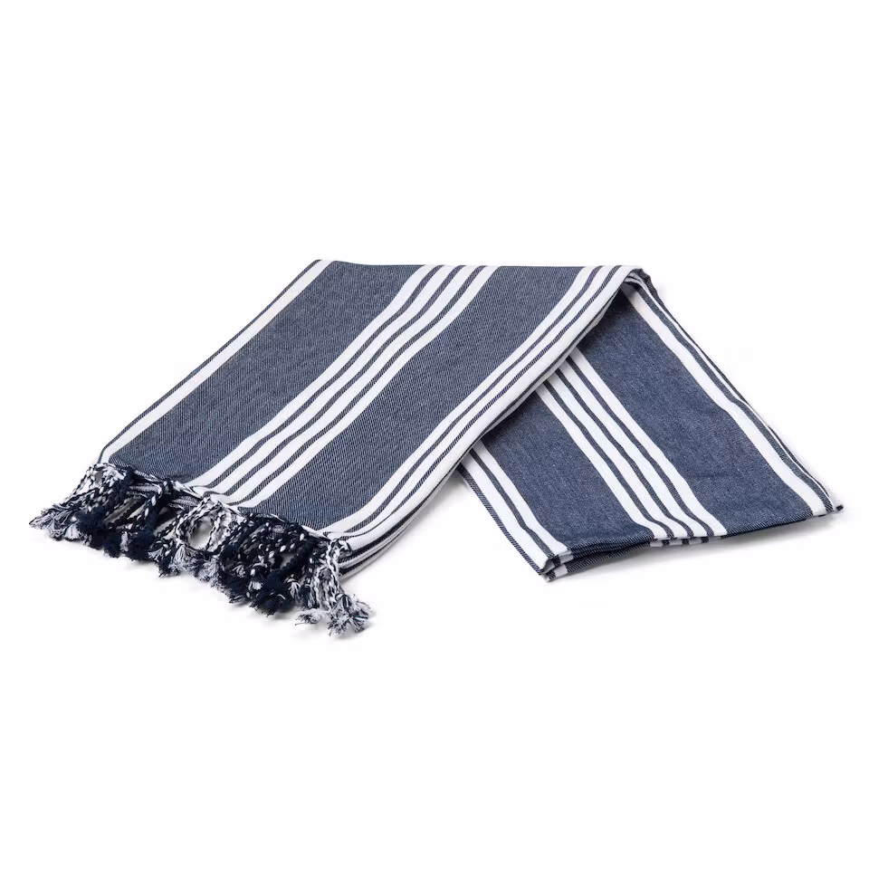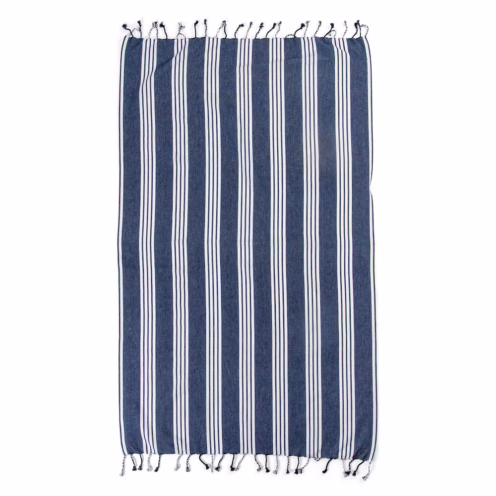 Hamam Torsvik från Lord Nelson Victory med marinblå botten och vita ränder. Klassiskt, stilrent och somrigt. En hamam har många fördelar då de torkar snabbt, tar liten plats, kan användas som badlakan, picknickduk, klädesplagg med mera. Det är bara fantasin som sätter gränser.
